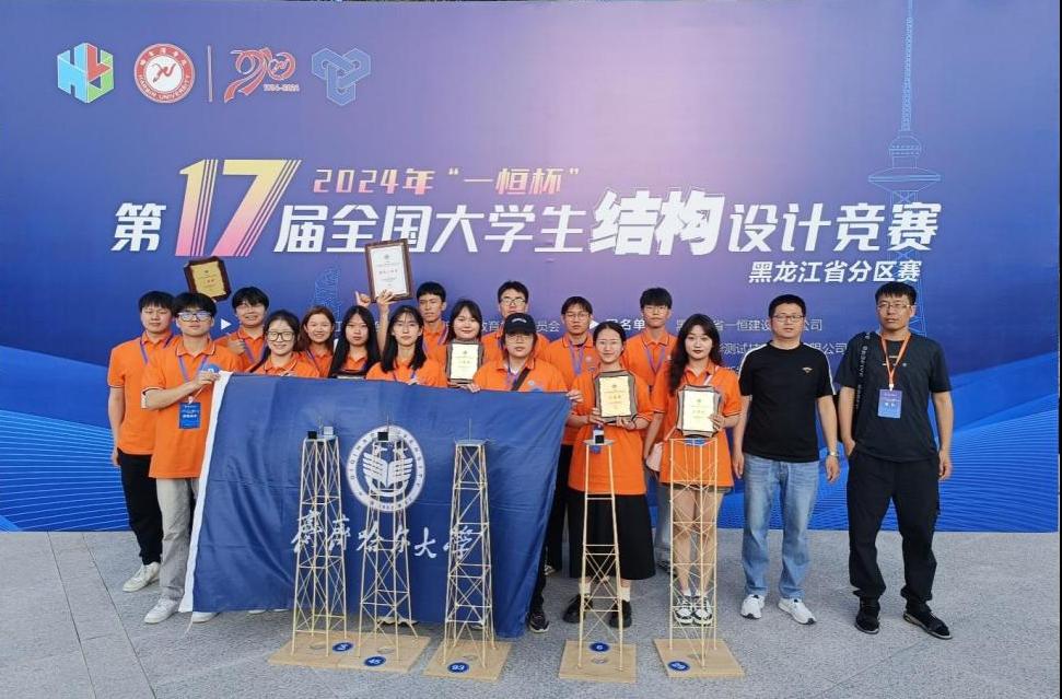6月9日,由哈尔滨学院主办的第17届全国大学生结构设计竞赛黑龙江省分赛圆满落幕,来自省内各高校共95支队伍的参赛选手齐聚一堂,展开激烈角逐。万象城建筑与土木工程学院教师郭国梁、王洪志作为领队,带领15名学生组成的5支参赛队伍参加了比赛,最终取得了一等奖1项,二等奖2项,三等奖2项,团体二等奖1项的优异成绩。