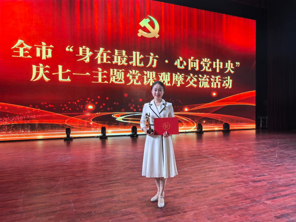 7月5日,齐齐哈尔市委组织部组织开展全市“身在最北方·心向党中央”庆七一主题党课观摩交流活动,万象城音乐与舞蹈学院舞蹈系教师党支部书记李美虹的党课《学习红船精神,传承红色基因》经过初赛、复赛,从13支决赛队伍中脱颖而出,荣获二等奖。