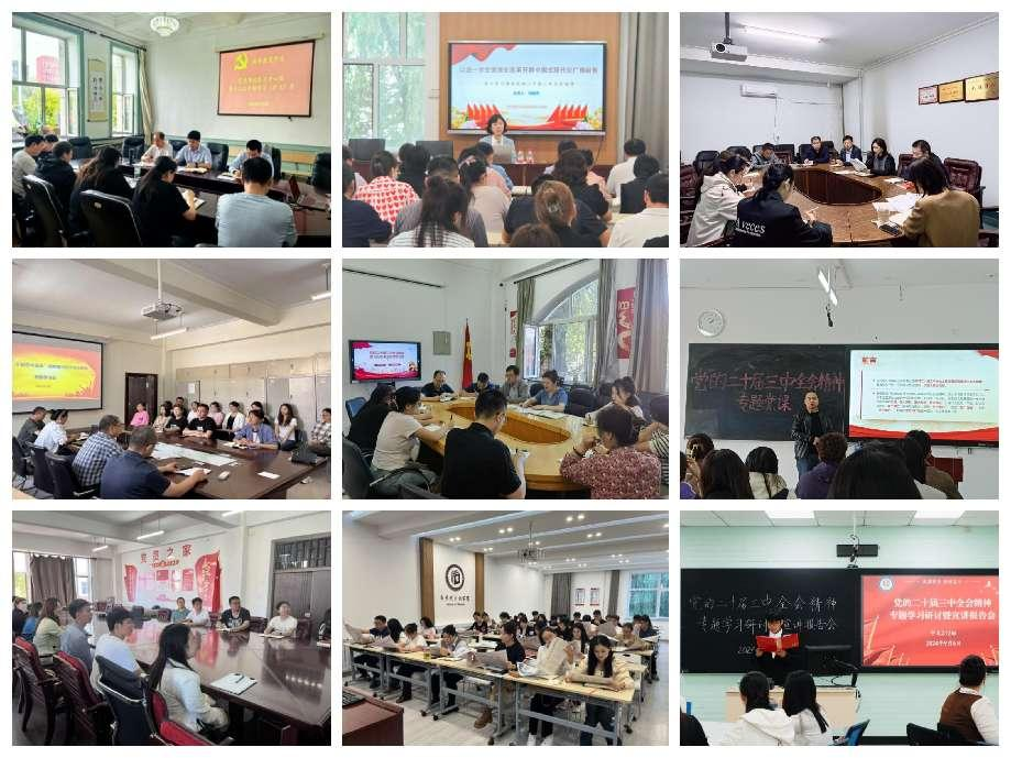 学校党委高站位统筹谋划。坚持把学习好宣传好贯彻好党的二十届三中全会精神作为当前和今后一个时期的重大政治任务。7月20日,学校党委召开常委会会议,传达学习了党的二十届三中全会精神,要求全校党员干部和师生员工要深化党的创新理论武装,以高度的政治自觉、思想自觉和行动自觉,切实推动党的二十届三中全会作出的重大决策部署在学校落地落实。党委宣传部高标准部署推动。全会结束后,第一时间组织干部师生热议全会精神,7月19日印发《关于认真学习宣传党的二十届三中全会精神的通知》,对全校学习宣传党的二十届三中全会精神作出具体部署,细化工作任务,引导全校党员干部和师生员工深化思想认识、汇聚改革力量。校院协同互促,高质量组织开展。校院两级党委理论学习中心组充分发挥示范带动作用,把党的二十届三中全会精神作为中心组学习的重要学习内容,领导干部先学一步、学深一层,通过集中学习研讨、撰写心得体会、开展调查研究、组织实践研学等形式强化学习效果,提升学习质量;各基层党委(直属党支部)、各部门及时召开专题学习会议,各党支部通过“三会一课”、主题党日活动等方式,组织党员干部和师生员工集中开展党的二十届三中全会精神学习研讨;各单位、各部门根据工作实际需求,创新学习方式、活化学习载体,依托教职工政治理论学习、青年理论学习小组、学生党员集体阅读《人民日报》等有效载体,高质量推动党的二十届三中全会精神学习真正实现“点对点、面对面、全覆盖”,迅速在全校掀起学习宣传全会精神热潮。