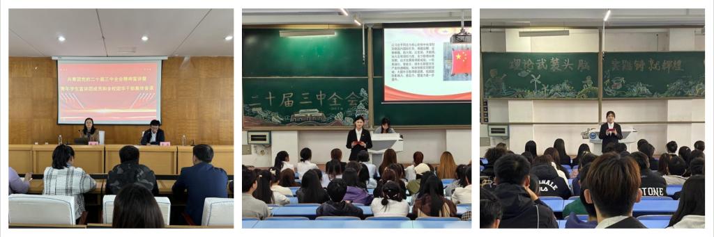 青年学生自己讲。校团委组织“青年学生党的创新理论宣讲团”在全校团员和青年中开展了3场党的二十届三中全会精神专题宣讲,青年学生用“青言青语”将“党的二十大以来党和国家事业取得的重大成就”讲清、讲准、讲活,让思想的光芒照亮青年成长成才之路,引导广大青年锚定目标向前进、勤奋学习长本领、团结奋斗建新功,更加主动为中国式现代化挺膺担当。