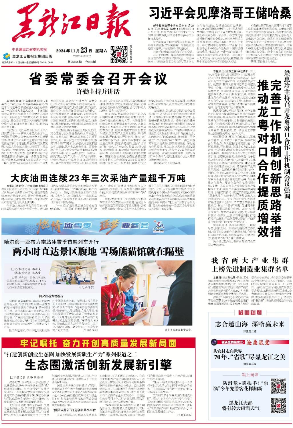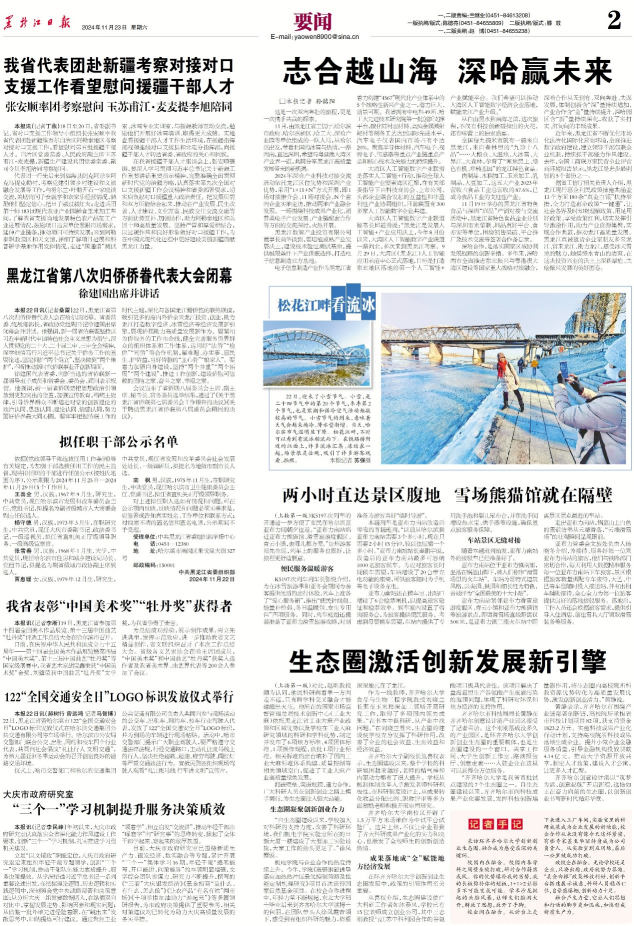 2024年11月23日,黑龙江日报以《生态圈激活创新发展新引擎》为题在头版报道了环万象城AWC官方网站创新创业生态圈建设工作。