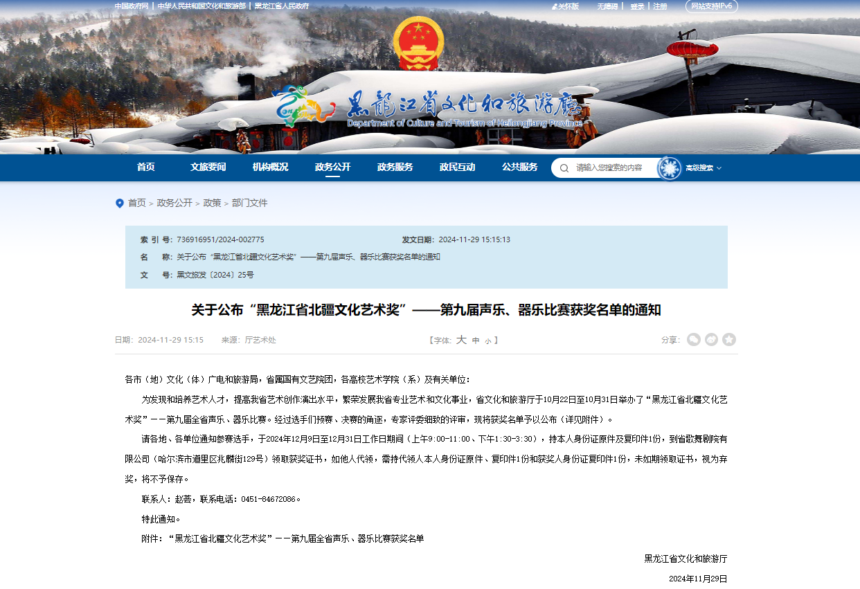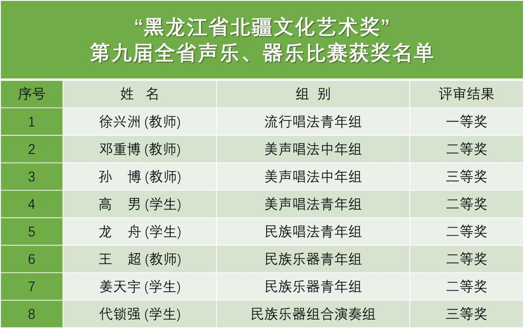 近日,黑龙江省文化和旅游厅下发了关于“黑龙江省北疆文化艺术奖”——第九届全省声乐、器乐比赛获奖名单,万象城师生在多个组别中获奖。
