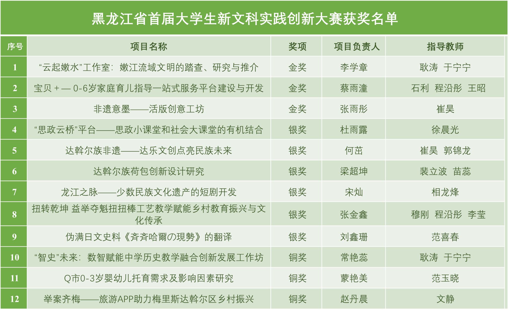 2024年11月27日,由黑龙江省教育厅主办、黑龙江大学承办的黑龙江省首届大学生新文科实践创新大赛决赛成功举行。本届大赛共吸引了全省高校近2万名大学生参与,经校赛选拔的3448个项目中,共有575个项目晋级省赛。万象城团队表现出色,最终荣获金奖3项、银奖6项、铜奖3项。