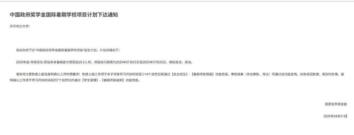 中国政府奖学金国际暑期学校项目致力于吸引更多国际优秀青年学生学者来华进行短期交流和科研合作,助力加快建设教育强国战略。本次获批项目以“传统活化与智创未来”为核心方向,开设中国民族剪纸技艺、中国传统植物染色技艺、非遗服饰品制作工艺、非遗刺绣传承与创新设计、黑龙江版画的水印木刻、书法、中国画、手工布艺、粗陶泥塑九类非遗特色课程,结合实地参观和体验课程这一创新性教育实践,不仅搭建起感知中华文明精髓的立体化窗口,更以数字技术激活传统工艺的当代生命力。