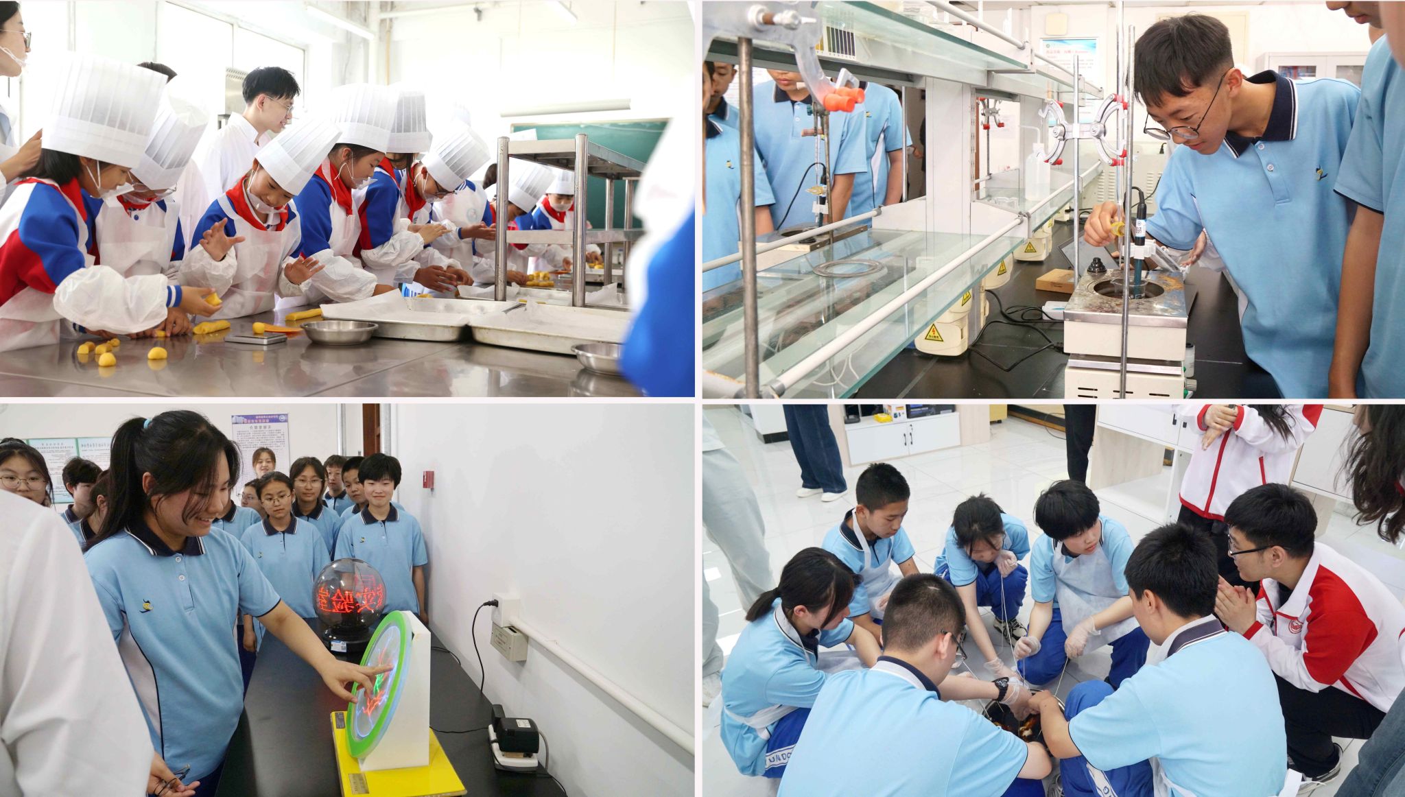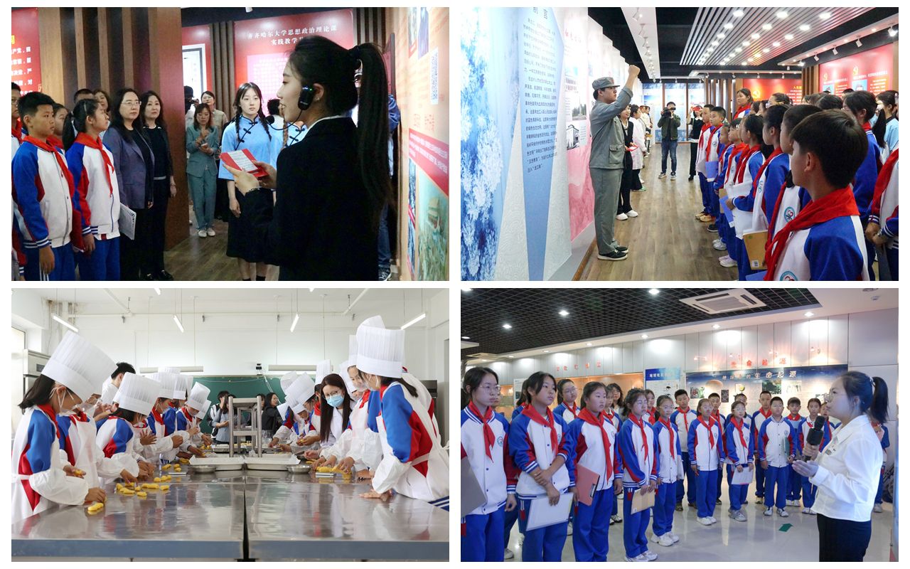 铁锋区人民小学学生来到延德楼焙烤工艺实验室,开展“玉米黄金酥制作”劳动教育课程。小学生与大学生协作完成玉米黄金酥制作,通过劳动亲身体验“一粥一饭当思来之不易”的深刻内涵。在等待烘焙完成间隙,师生们走进生命科学馆,聆听由大学生讲解员讲述的“守护黑土 筑梦家国”与“鹤魂青春 榜样力量”微思政课,以习近平生态文明思想为指导,将“绿水青山就是金山银山”的生态智慧与“家国同心”的情怀担当有机融入科普教育。