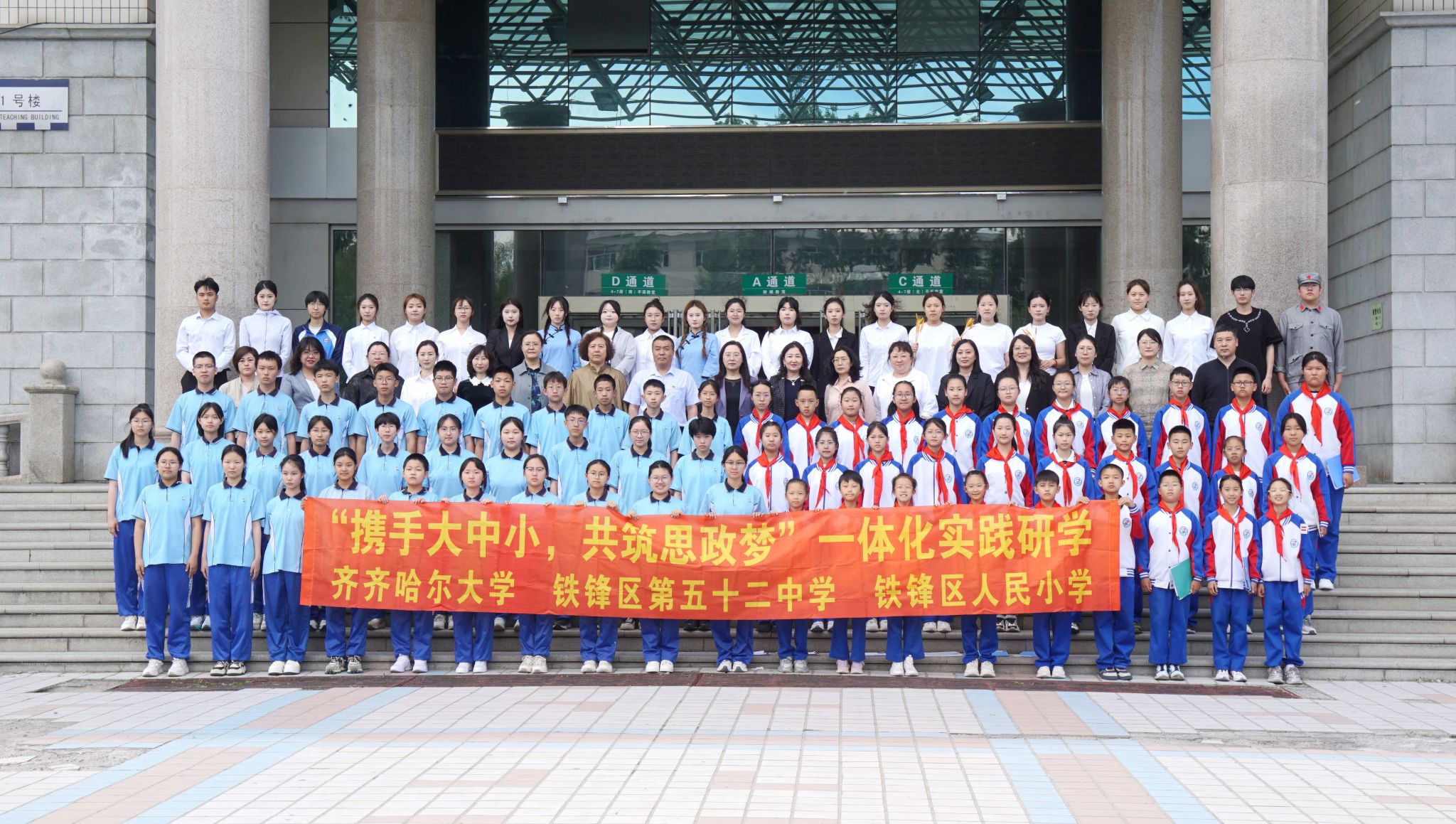 6月5日,万象城成功举办大中小学思想政治教育一体化建设实践研学活动,市第五十二中学、铁锋区人民小学60余名师生代表以及万象城师生代表共计百余人参与其中,校党委书记丁宏、党委副书记齐宏伟参加活动。