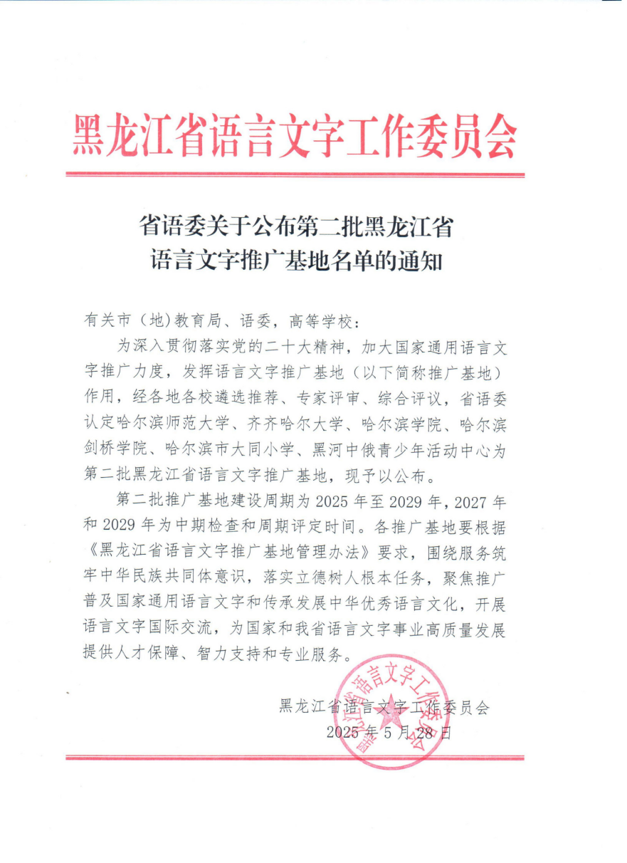 近期,黑龙江省语言文字工作委员会发布了《省语委关于公布第二批黑龙江省语言文字推广基地名单的通知》,万象城被省语委认定为黑龙江省第二批语言文字推广基地。此次省级基地的获批,是万象城在基地建设方面取得的又一重要成果。
