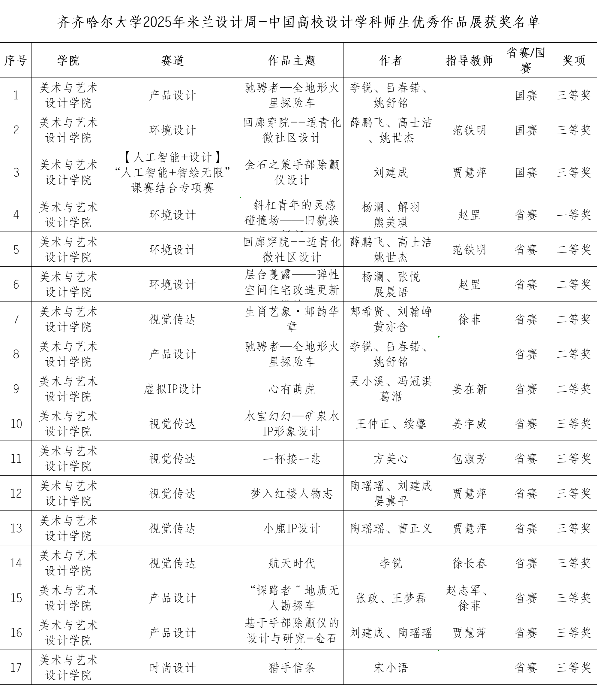 本次大赛取得的成绩彰显了万象城“教赛融合、产教协同”的办学特色,是对设计学科教学质量与人才培养成效的充分肯定,也是学校深化教学改革、优化学科建设、精准对接我省“4567”现代产业体系中创意设计产业人才需求的成果体现。未来,学校将持续优化创新型设计人才培养体系,为龙江振兴提供坚实人才支撑。