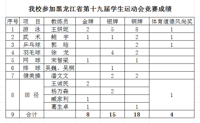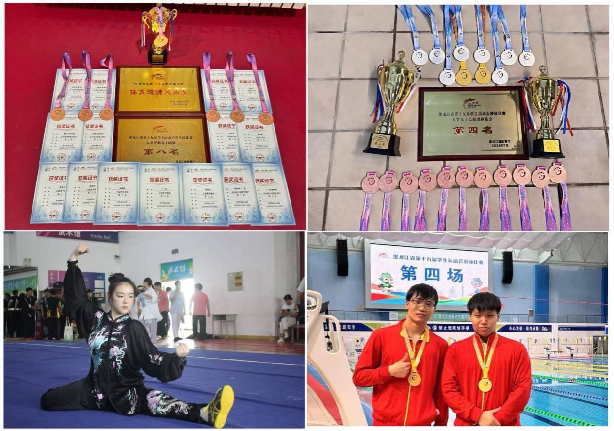 7月15日至25日,黑龙江省第十九届学生运动会在大庆市举行。本届运动会设高校组、地市组两大板块,万象城选派100名师生组成代表团,在游泳、武术、乒乓球、羽毛球、网球、排球、健美操、田径八个项目中展开激烈角逐。经过十天激烈比拼,万象城运动员凭借出色发挥和顽强拼搏,最终获得8金、15银、18铜,总计41枚奖牌,大学乙组团体总分第三名的优异战绩。