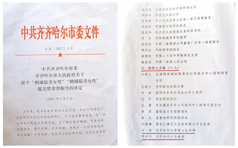 3月7日下午,齐齐哈尔市妇联在市工人文化宫举办了庆祝建会70周年暨“鹤城最美女性”颁奖典礼,万象城财务处处长沙伟和材料科学与工程学院教授顾晓华荣获“鹤城最美女性”称号。