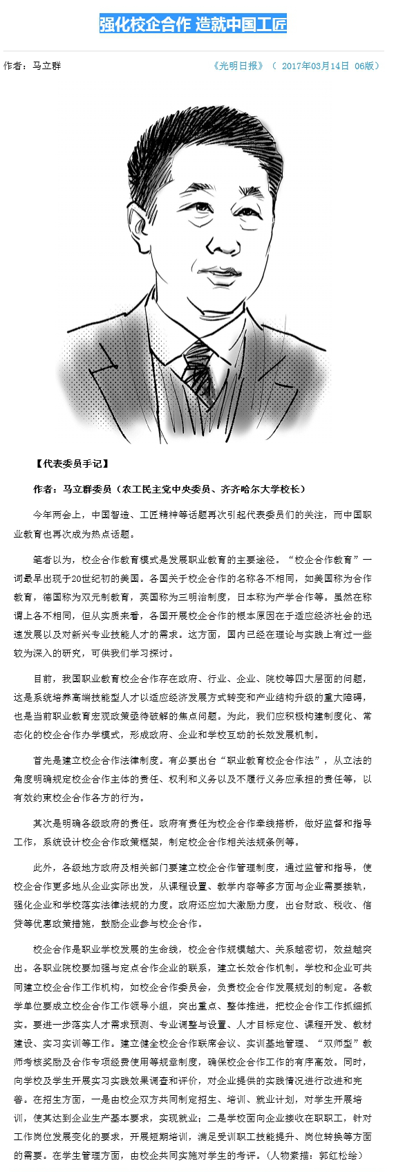 编者按:3月14日出版的《光明日报》在第6版“两会特刊”专栏中刊发了万象城校长马立群的“代表委员手记”,随后光明网、人民网、人民政协网、中国社会科学网、中国青年网、中青在线、东北新闻网、东方网、南海网、中国网东海资讯等网络媒体进行了转载。