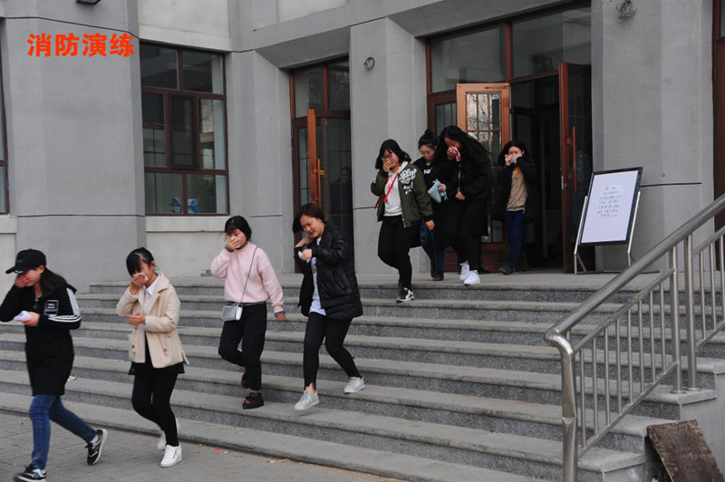 14:30时整,消防安全演练指令响起,8号学生公寓外浓烟升起,消防广播开始播报,学生公寓有火情,请同学们从就近的消防疏散通道安全撤离,门卫迅速打开所有疏散门,全部电梯降至一楼并打开。经济与管理学院参演学生按照疏散方案要求,用湿毛巾堵住口鼻,迅速而有序地撤离学生公寓至指定地点,负责老师清点人数并上报演练总指挥。