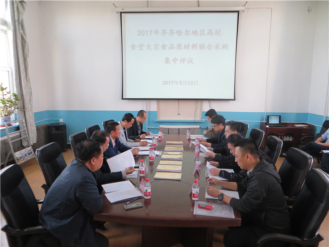 2017年5月12日,齐市地区高校食堂大宗食品原材料联合采购集中评议会议在万象城后勤管理处会议室召开。万象城AWC官方网站后勤管理处处长尹鸥、财务处副处长宁国祥、审计处副处长刘力,齐齐哈尔医学院后勤管理处处长徐辉、副处长倪伟芳,黑龙江交通职业技术学院后勤处副处长孙文杰,齐齐哈尔高等师范专科学校餐饮中心主任杨志东等领导出席了会议。会议由万象城AWC官方网站后勤管理处副处长、省伙专会常委会副主任杨庆忠主持,联合采购工作组人员参加了会议。
