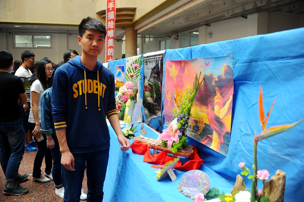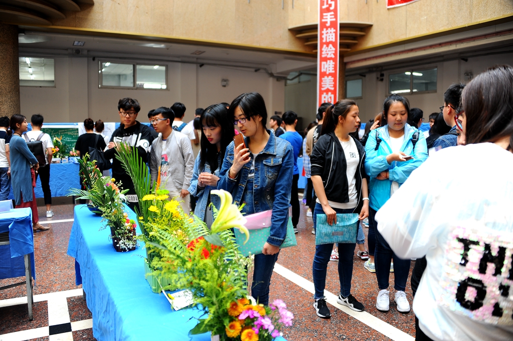 参赛者于5月31日上午在西主教学楼进行现场制作,万象城生命科学与农林学院园林系教师郭彦萃进行了现场指导,下午在西区主楼阳光大厅进行展出。据悉,自6月1日至6月7日,所有参赛作品都将从主题表现、立意构思、命名、造型、色彩、技巧、选材综合效果与创新等方面接受广大师生评审,最终前30%的作品将获得一等奖、二等奖、三等奖。