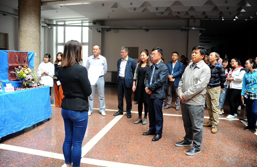 校领导盖元臣、齐宏伟、郑喜群、王刚、姜国庆到现场观看作品,听取参赛学生关于插花作品创意的说明,并给予鼓励。学校办公室、学生工作部(学生处)、校团委,生命科学与农林学院等部门、学院领导及园林系师生观看了比赛。