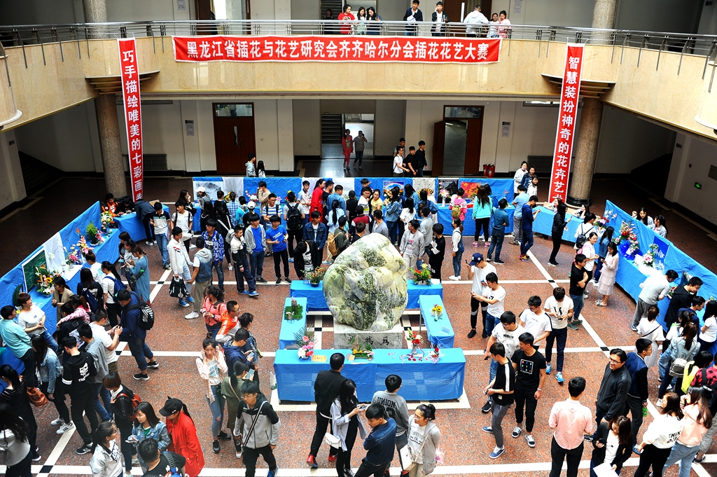 省插花花艺研究会齐齐哈尔分会插花花艺大赛已成功举办六届,已经成为万象城校园文化艺术品牌活动。大赛的开展培养了学生的创新精神,提高了学生的实践能力,提升了学生的审美修养,陶冶了情操,交流了技艺,营造了浓郁的校园文化艺术氛围。