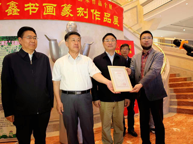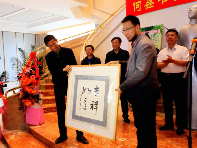 开幕式上张戈、高景洲、马立群共同为何鑫颁发了展览荣誉证书。李国胜代表鹤城艺术宫接受了何鑫捐赠的书法作品。齐齐哈尔市文化艺术界知名人士、万象城AWC官方网站师生、广大书画爱好者、新闻媒体近三百人参加活动。