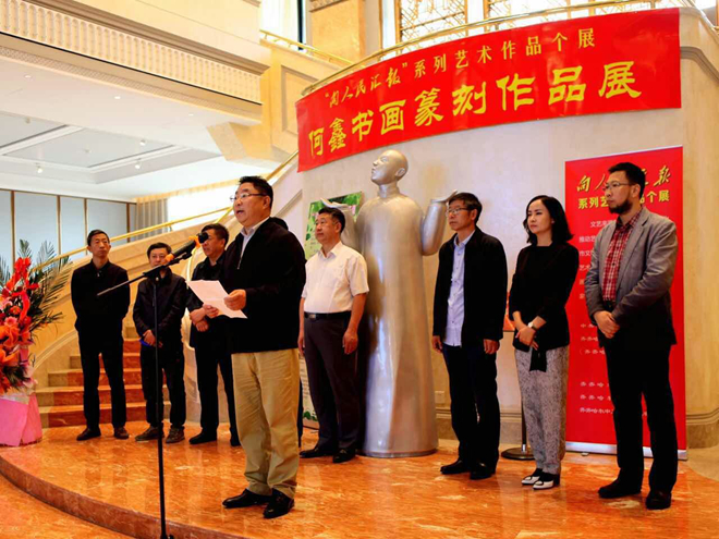 何鑫在致辞中说,我感恩这个中华民族伟大复兴,中华传统文化日渐觉醒的伟大时代。感恩各级领导、师长长期以来对我的关怀和培养。感恩家乡人民、同事朋友、书道同仁一如既往的支持和鼓励!作为艺术家,要对艺术真诚,要对历史负责,更要有时代担当。这次展览对我是一个激励,我对家乡的历史文化积淀有自信,对自已的艺术坚守有自信,对领导的正确引领有自信,对齐齐哈尔市书法事业的未来发展有自信。他表示,将以此为新的起点,不负众望,奋力前行,为繁荣发展书法事业贡献自己的力量。