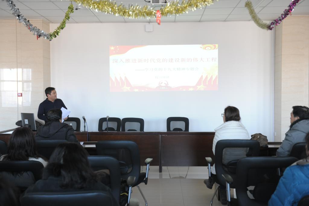 在西区1教615会议室,校党的十九大精神宣讲团成员、科技处副处长、博士、硕士生导师伊全胜教授以《学习贯彻党的十九大精神推进高水平大学建设》为题,从党的十九大概况、主题,党的十九大提出的新理念、新判断、新目标,扎实推进万象城作风整顿工作、推进有特色高水平教学研究型综合大学建设等内容对党的十九大精神进行了全面、深入的讲解。他指出,学习党的十九大精神,要在学懂弄通上下功夫,要在理论联系实际上下功夫。要适应新时代中国特色社会主义的发展要求,明确历史方位,增强“四个意识”,勇于担当,务实干事,在推进高水平大学建设中,坚决贯彻落实党的十九大确定的大政方针、发展战略、政策措施。现代教育技术中心全体教职工参加了宣讲活动。