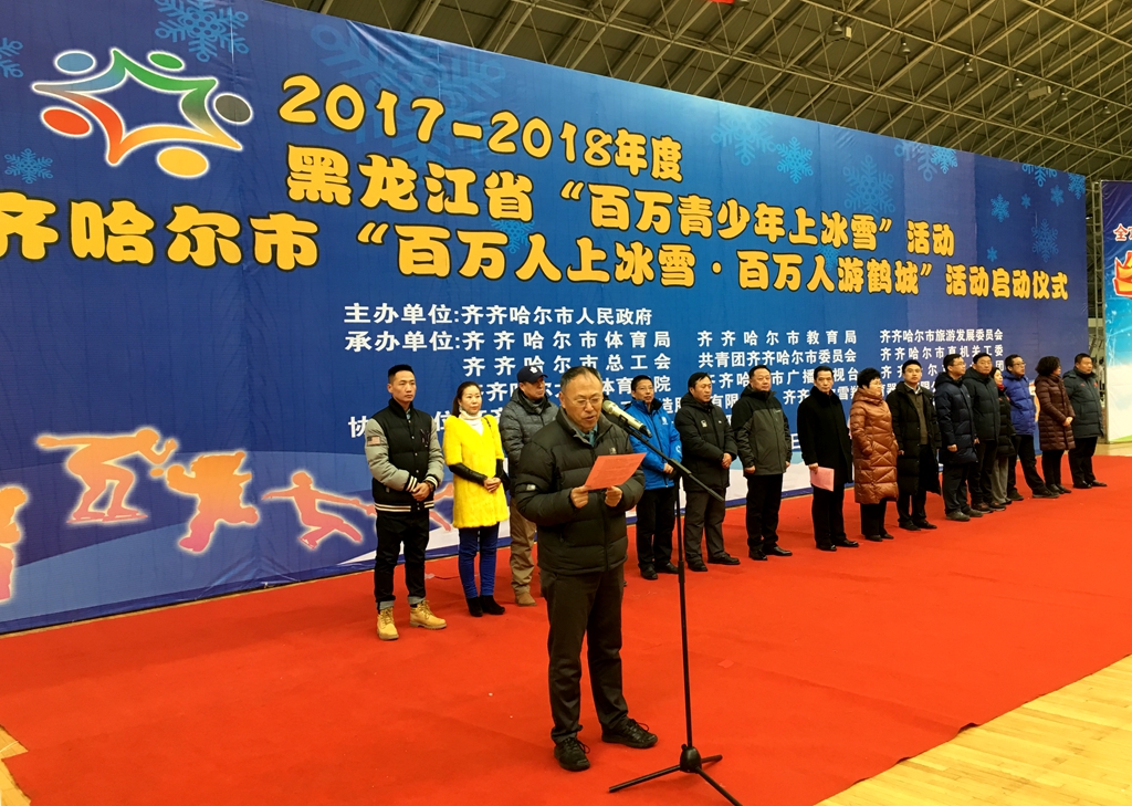 12月3日上午,2017—2018年度黑龙江省“百万青少年上冰雪”活动暨齐齐哈尔市“百万人上冰雪百万人游鹤城”活动启动仪式在市体育运动管理中心速滑馆举行,万象城体育学院院长姚大为出席开幕式。