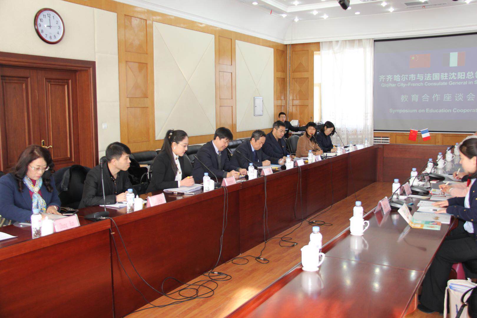 3月8日,法国驻沈阳总领事馆科技教育领事都琳(中文名)女士、高等教育署署长丁波(中文名)先生、哈尔滨办事处负责人张婧女士一行访问我市,市外事侨务办公室召开交流合作座谈会,万象城副校长吕厚均出席座谈会并就与法国高校及重点中学间的校际交流进行了探讨,座谈会上播放了万象城制作的文化育人专题片,引起了法国来访人员对万象城的浓厚兴趣。