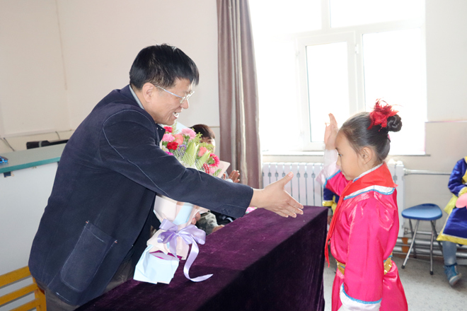 上午10点30分,捐资助学活动正式开始,哈拉达小学对万象城师生的到来表示热烈欢迎以及衷心感谢,并以视频的形式回顾了这二十年来“鸿雁工程”与哈拉达小学建立的深厚情义。哈拉达小学的学生代表特意向“鸿雁工程”发起人之一的杨淳老师献花来表示这二十年来他对“鸿雁工程”所付出的辛劳汗水与做出的巨大贡献。