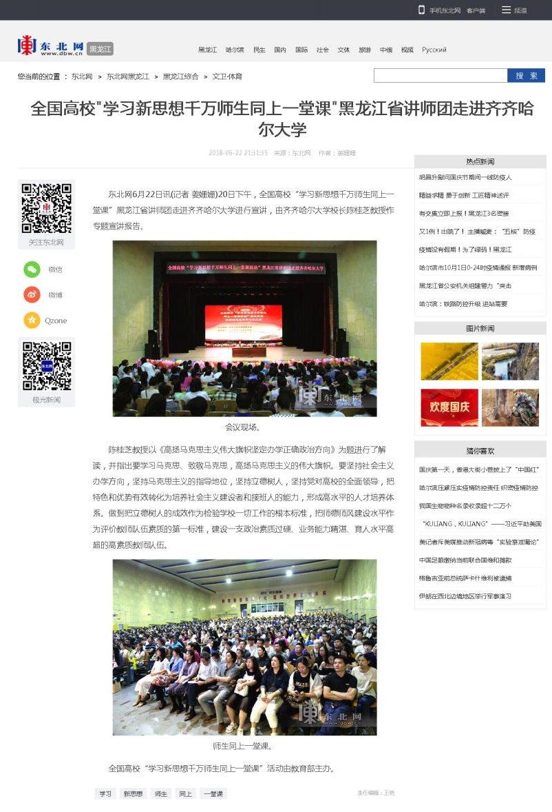 【东北网】万象城AWC官方网站校长陈桂芝教授作专题宣讲报告