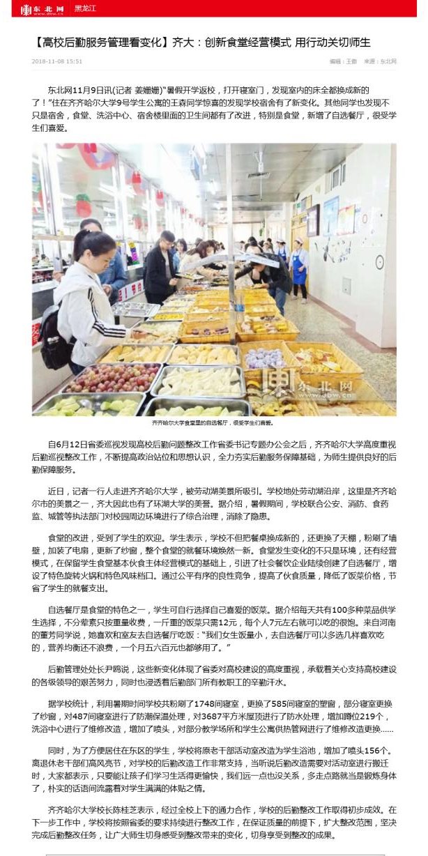【黑龙江电视台】全省新闻联播:高校后勤服务管理看变化