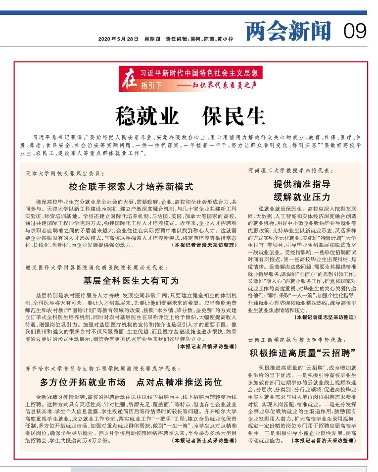 《光明日报》(05月28日09版):郭成宇代表“多方位开拓就业市场 点对点精准推送岗位”