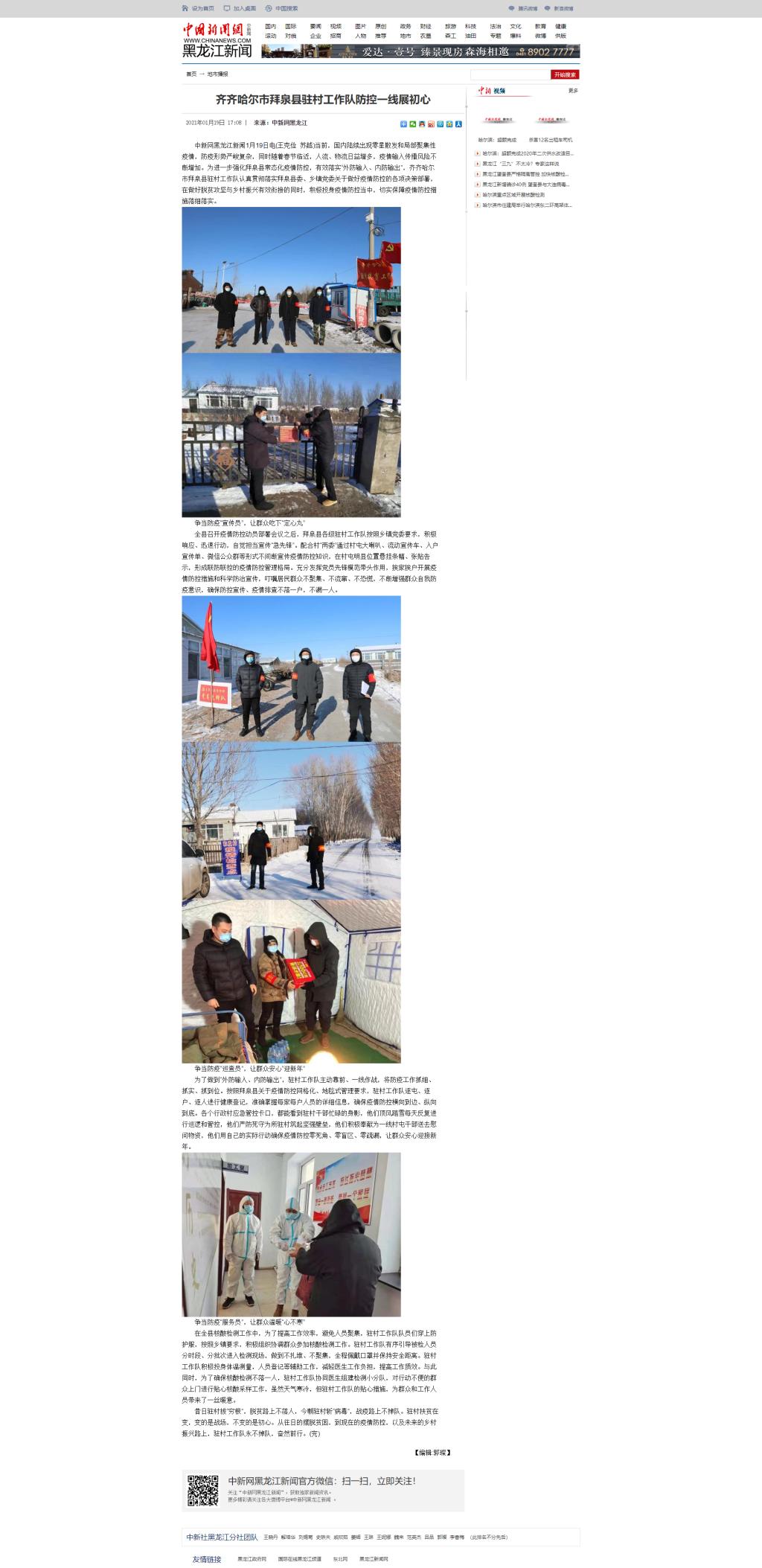 【中国新闻网】齐齐哈尔市拜泉县驻村工作队防控一线展初心
