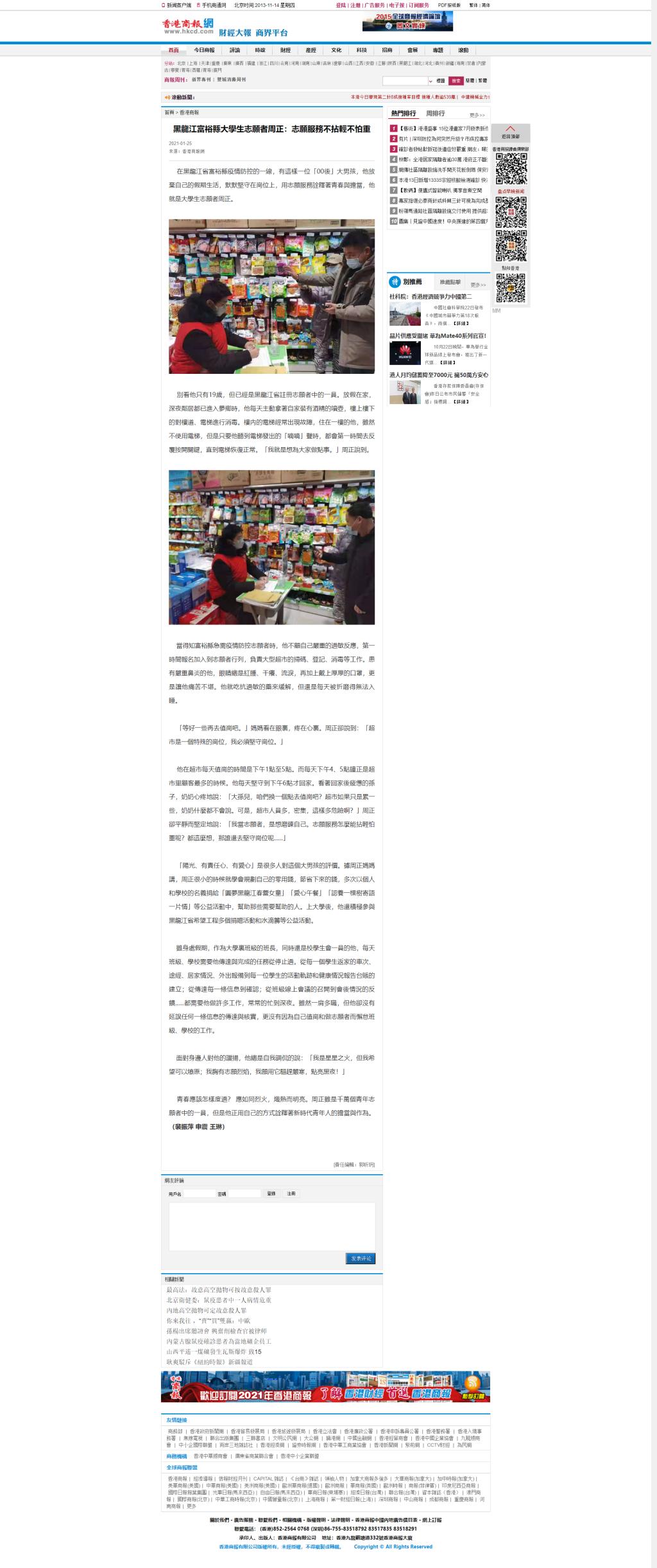 【香港商报网】黑龍江富裕縣大學生志願者周正:志願服務不拈輕不怕重