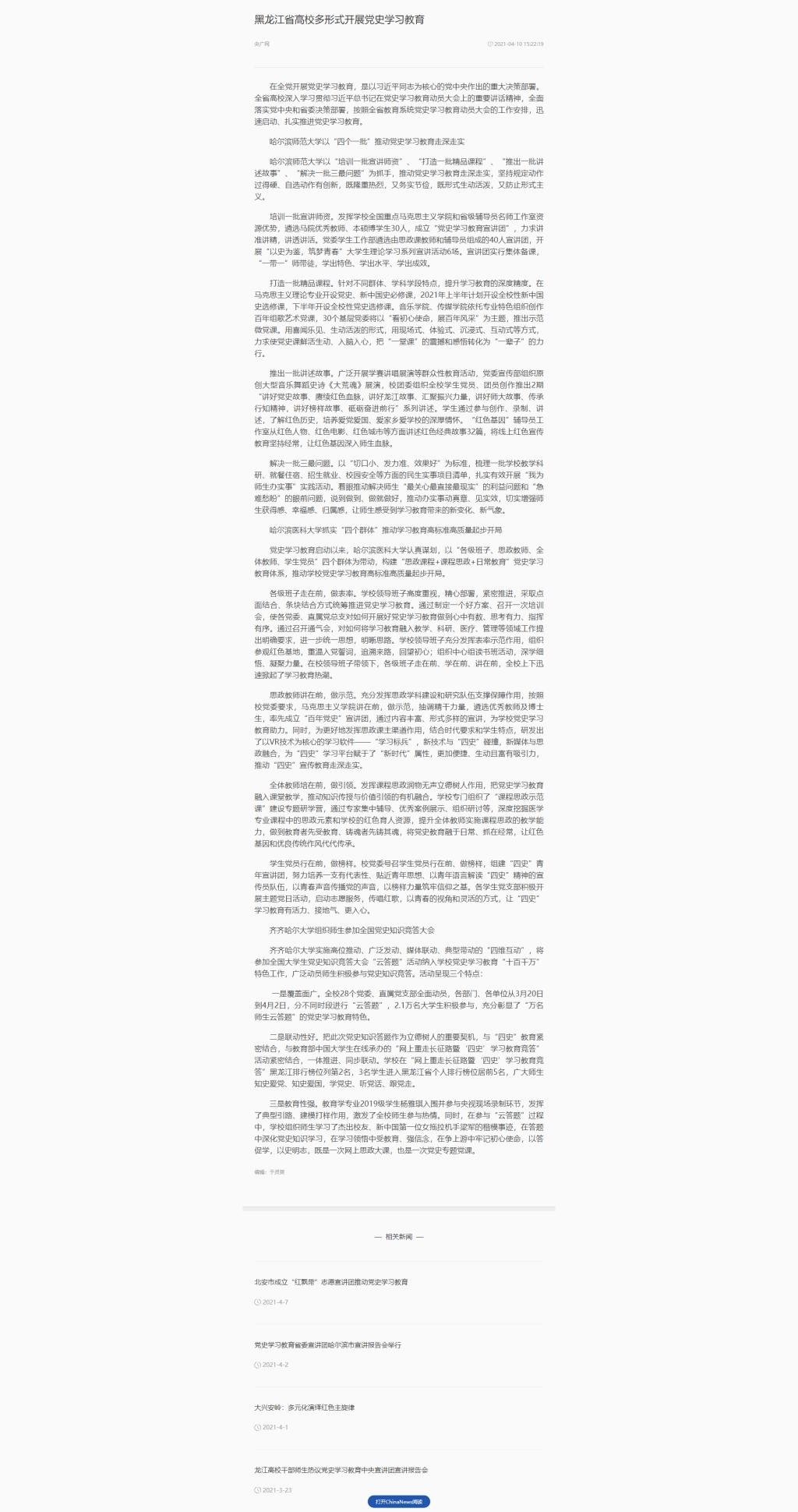 【ChinaNews】黑龙江省高校多形式开展党史学习教育