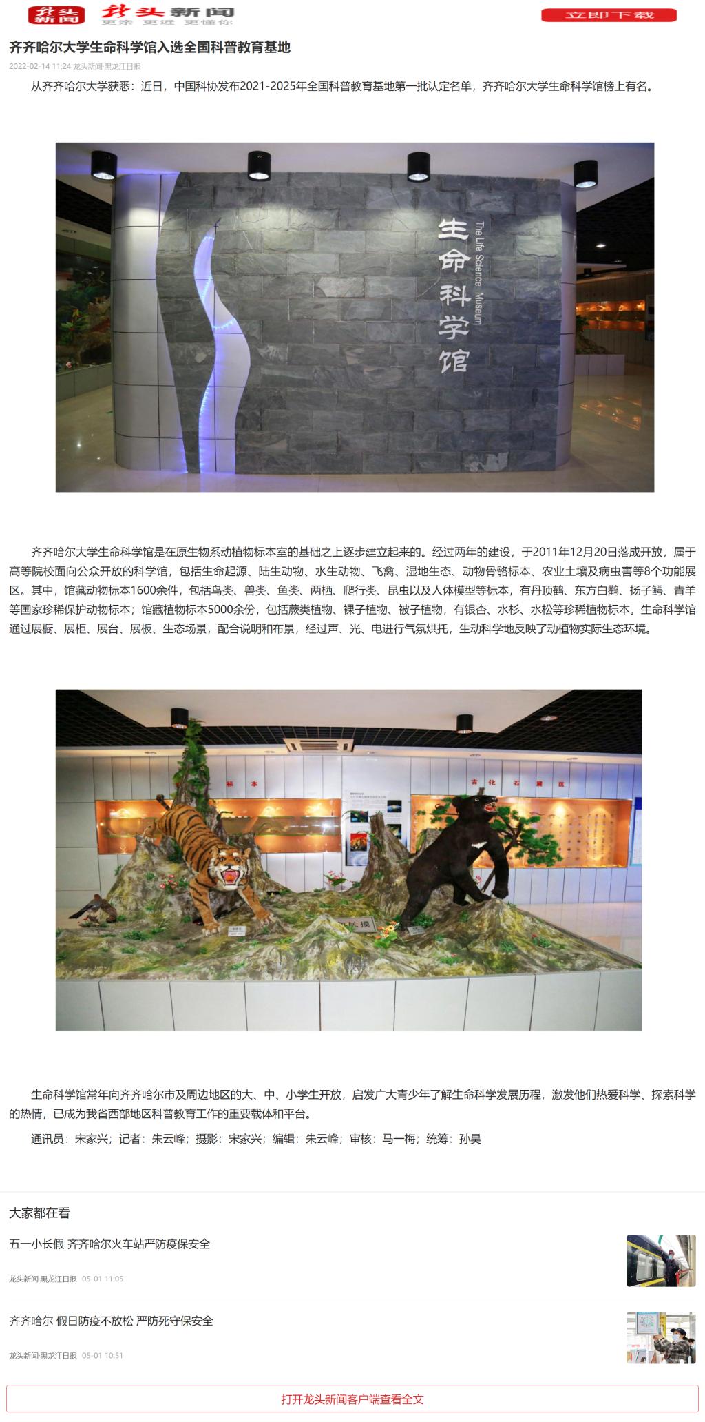 【龙头新闻】万象城AWC官方网站生命科学馆入选全国科普教育基地