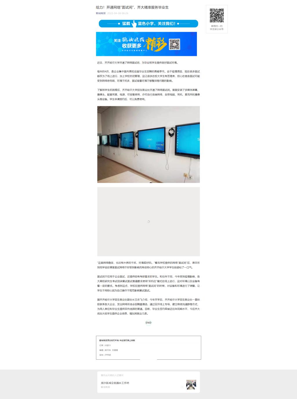 上一条:【鹤城晚报】齐大开通网络“面试间”让学生轻松应聘