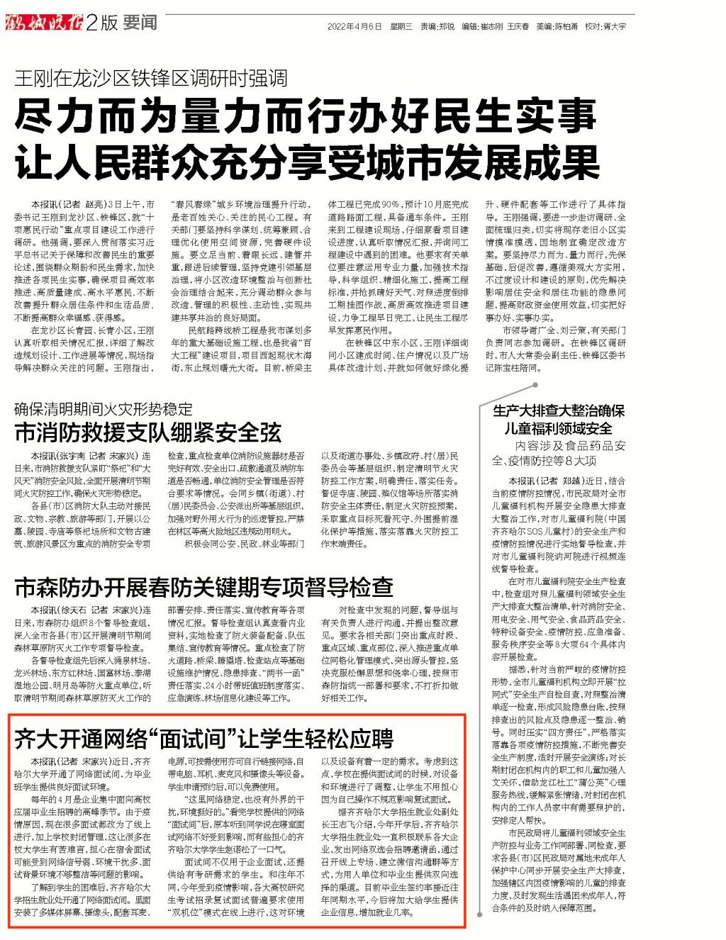 下一条:【鹤城晚报】给力!开通网络“面试间”,齐大精准服务毕业生