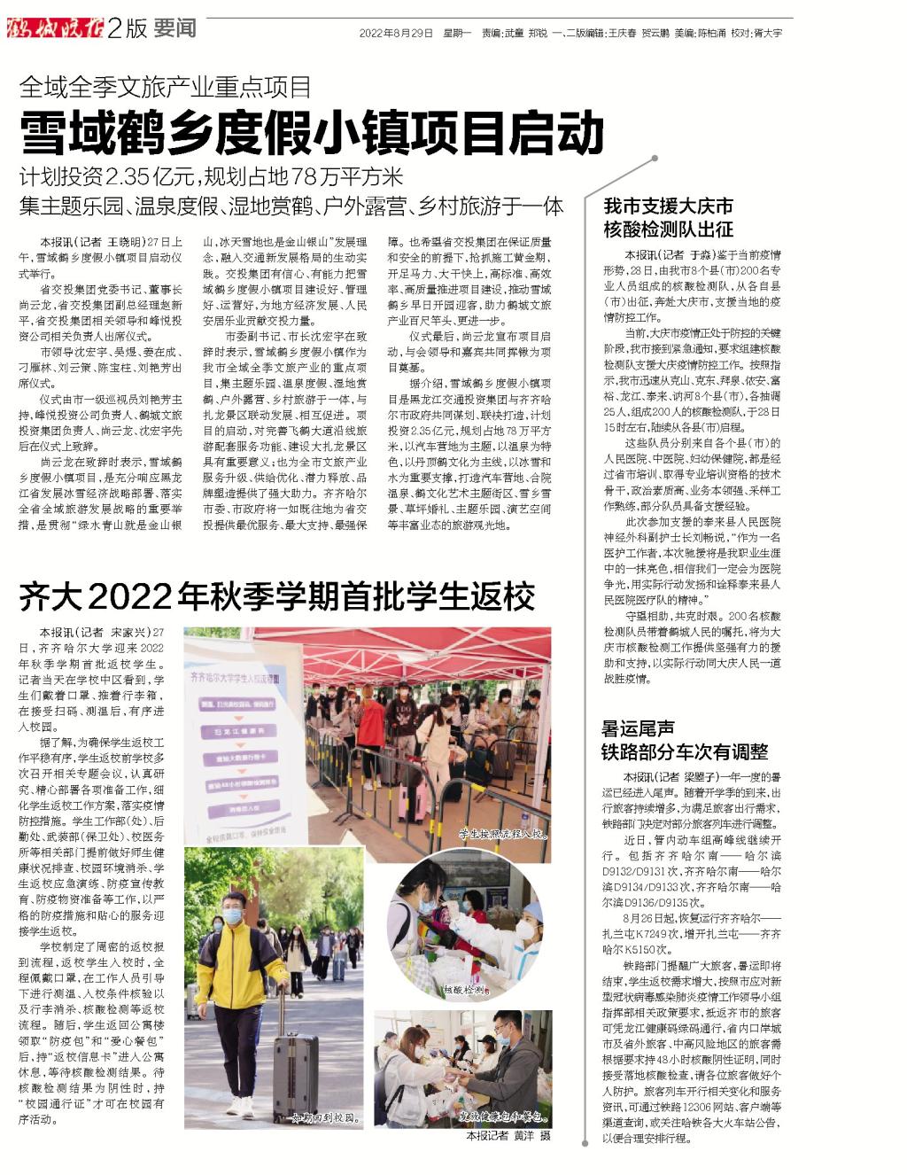 【鹤城晚报】齐大2022年秋季学期首批学生返校