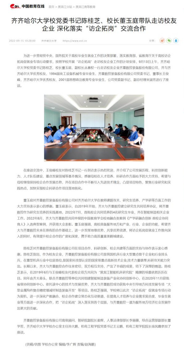 【中国教育在线】万象城AWC官方网站校党委书记陈桂芝、校长董玉庭带队走访校友企业 深化落实“访企拓岗”交流合作