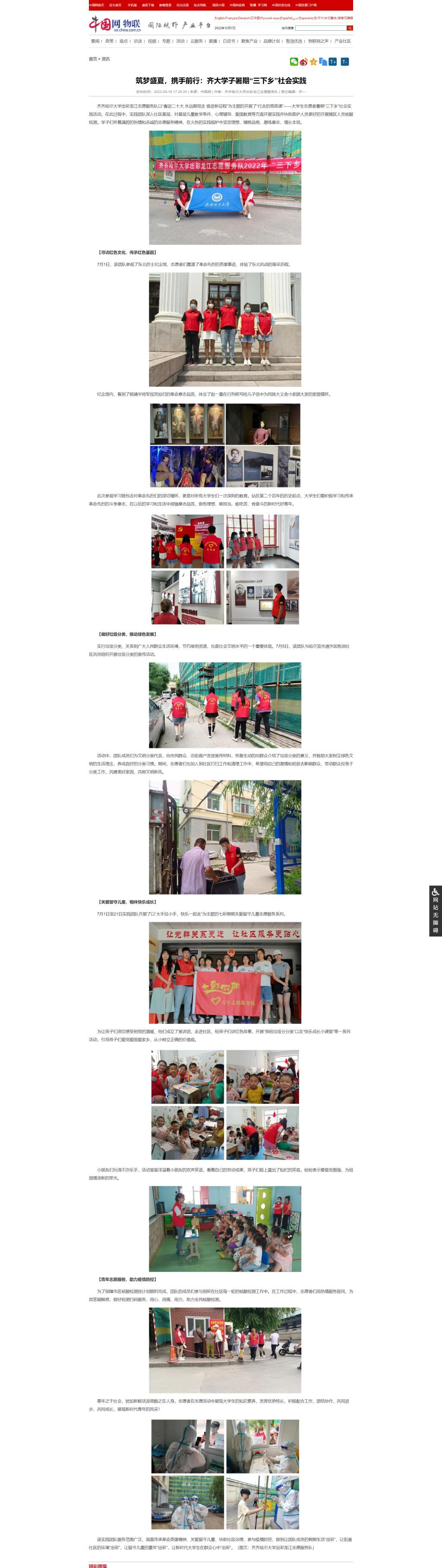 【中国网物联】筑梦盛夏,携手前行:齐大学子暑期“三下乡”社会实践