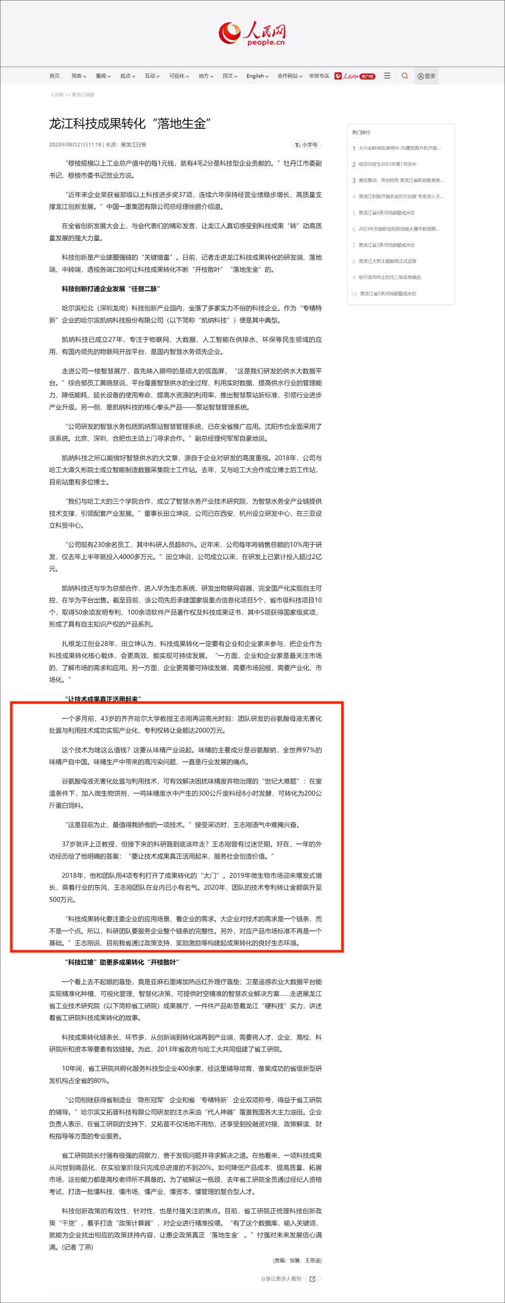 【人民网】龙江科技成果转化“落地生金”