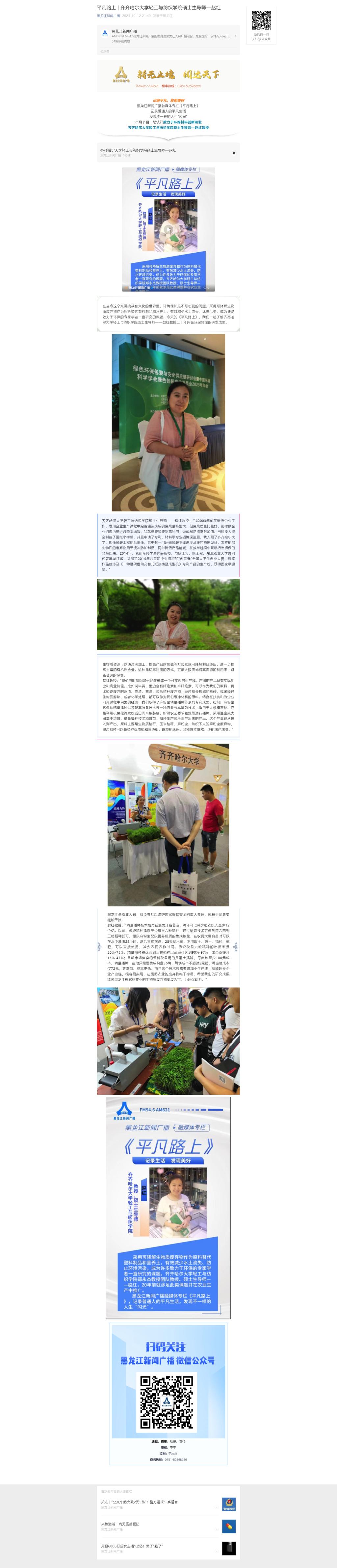 【黑龙江新闻广播】平凡路上 | 万象城AWC官方网站轻工与纺织学院硕士生导师—赵红