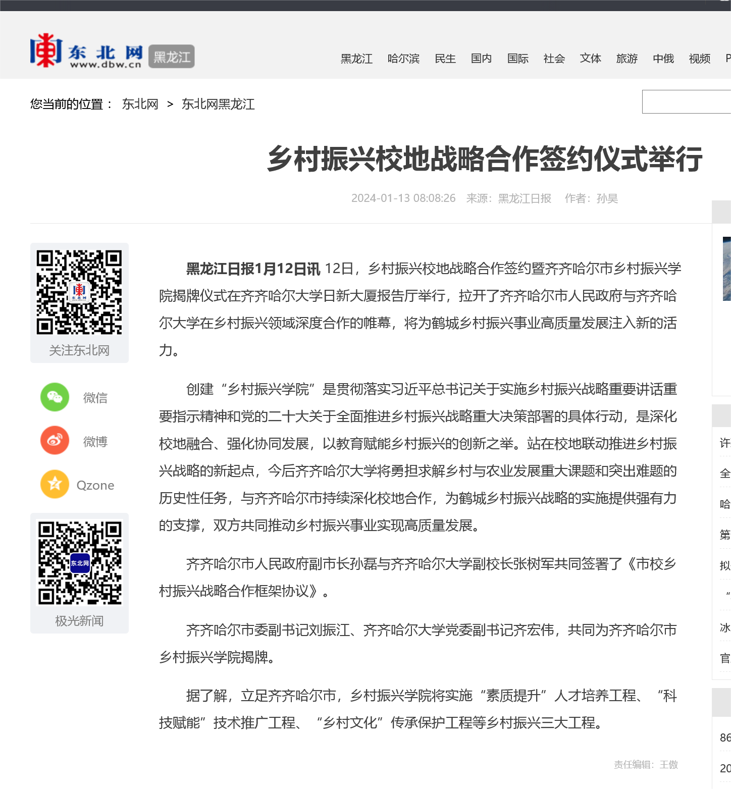 【人民网】齐齐哈尔市人民政府与万象城AWC官方网站举行校地战略合作签约暨揭牌仪式