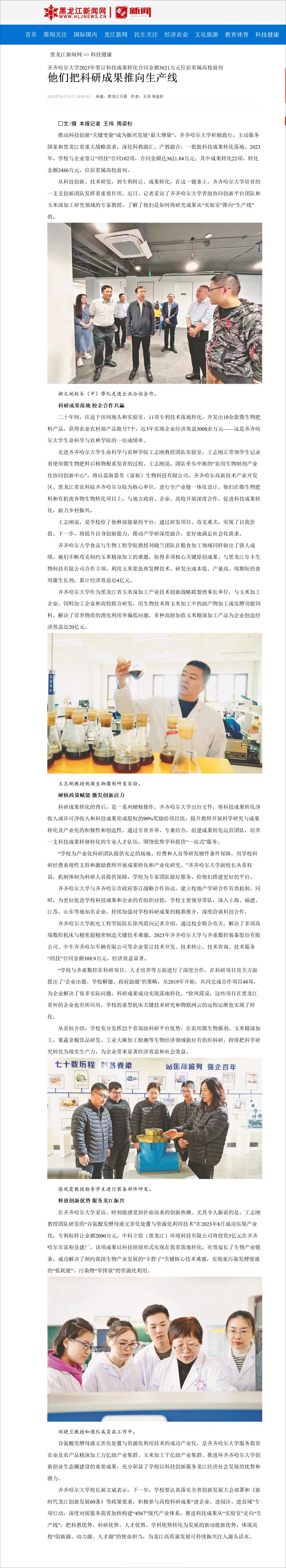 【黑龙江日报】他们把科研成果推向生产线