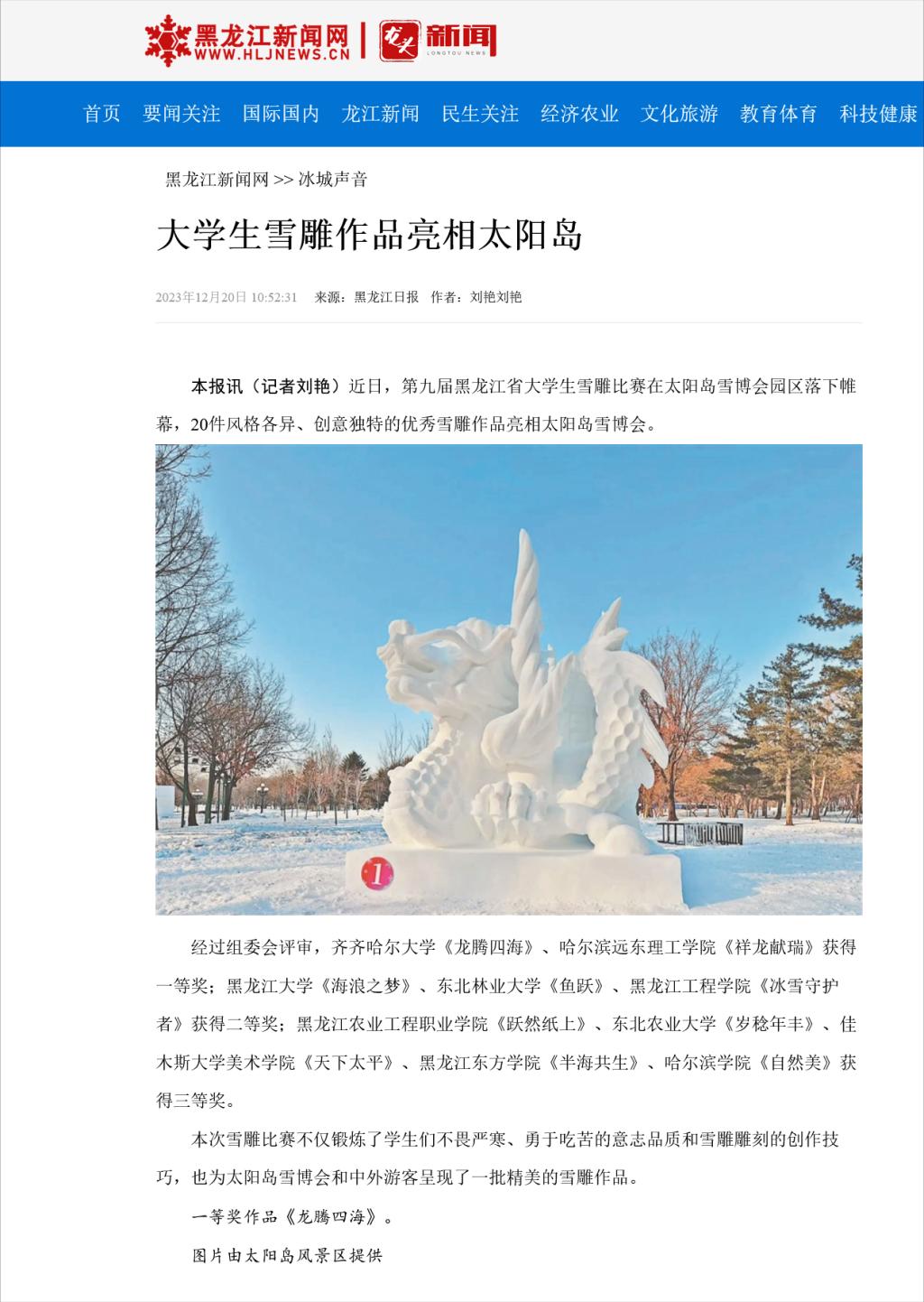 【黑龙江新闻网】大学生雪雕作品亮相太阳岛