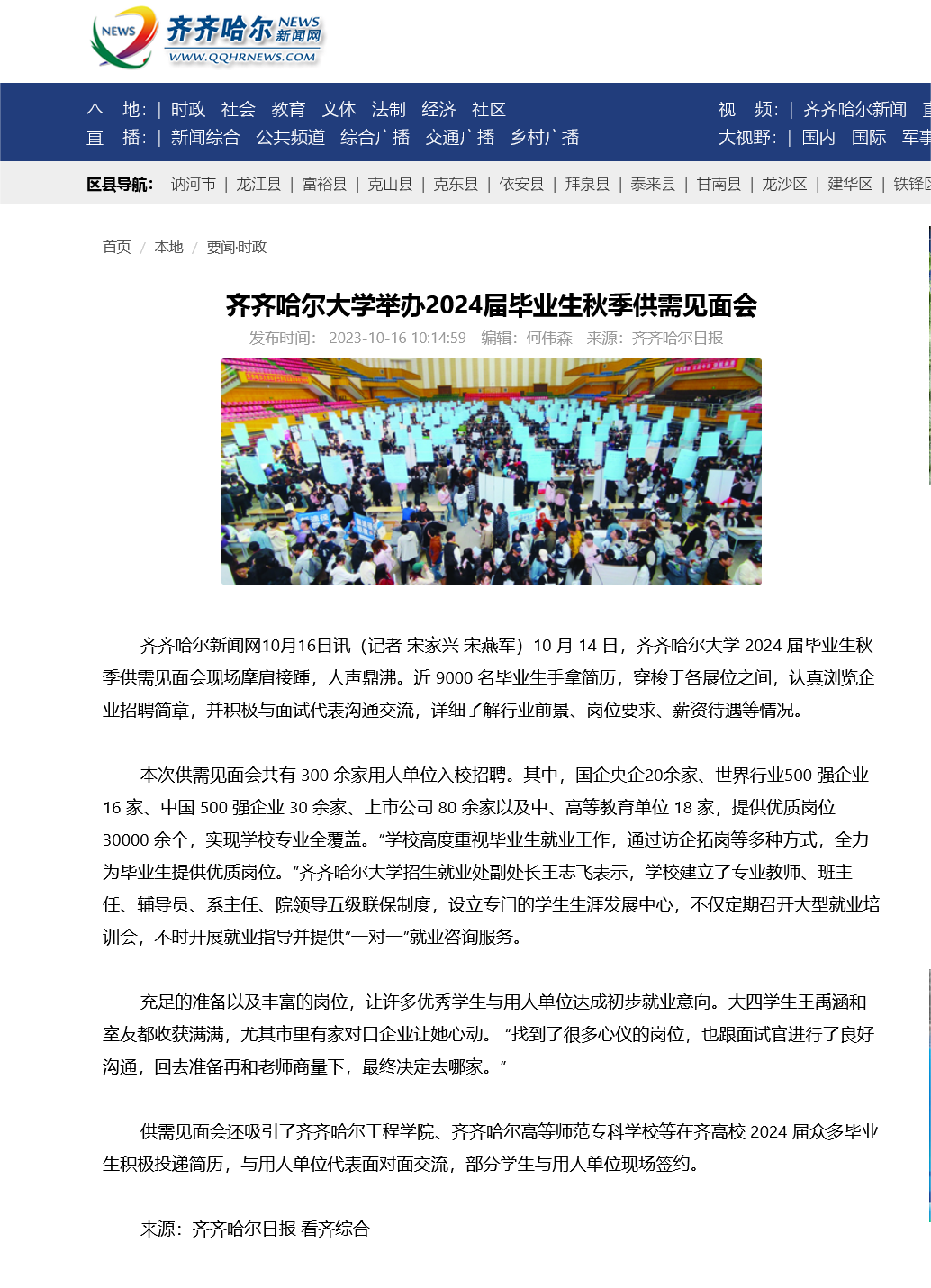 【齐齐哈尔新闻网】万象城AWC官方网站举办2024届毕业生秋季供需见面会