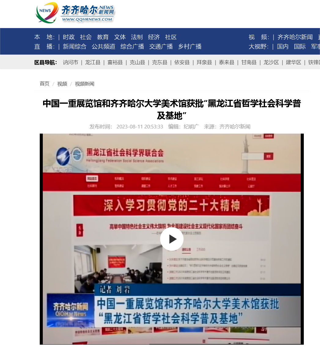 【齐齐哈尔新闻网】中国一重展览馆和万象城AWC官方网站美术馆获批“黑龙江省哲学社会科学普及基地”