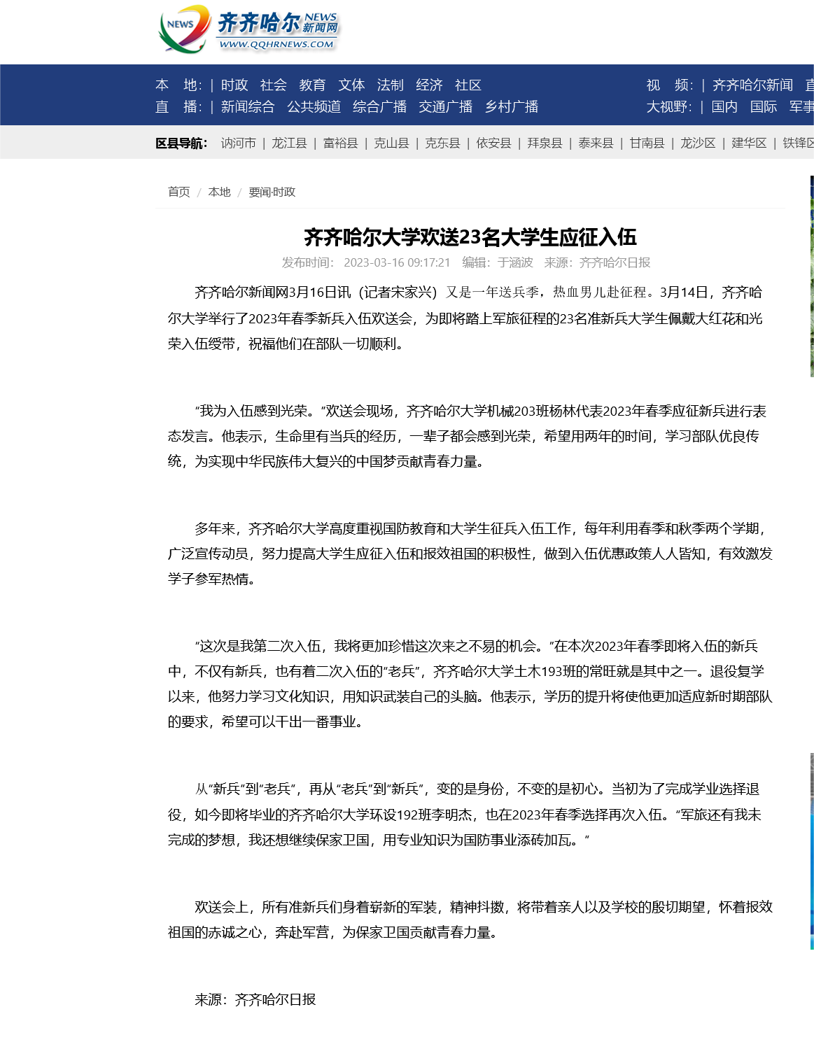 下一条:【鹤城晚报】送新兵 踏征程 万象城AWC官方网站欢送23名应征入伍准新兵大学生