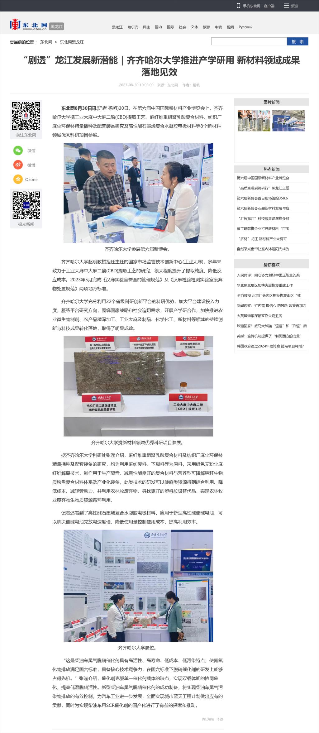 【东北网】“剧透”龙江发展新潜能|万象城AWC官方网站推进产学研用 新材料领域成果落地见效