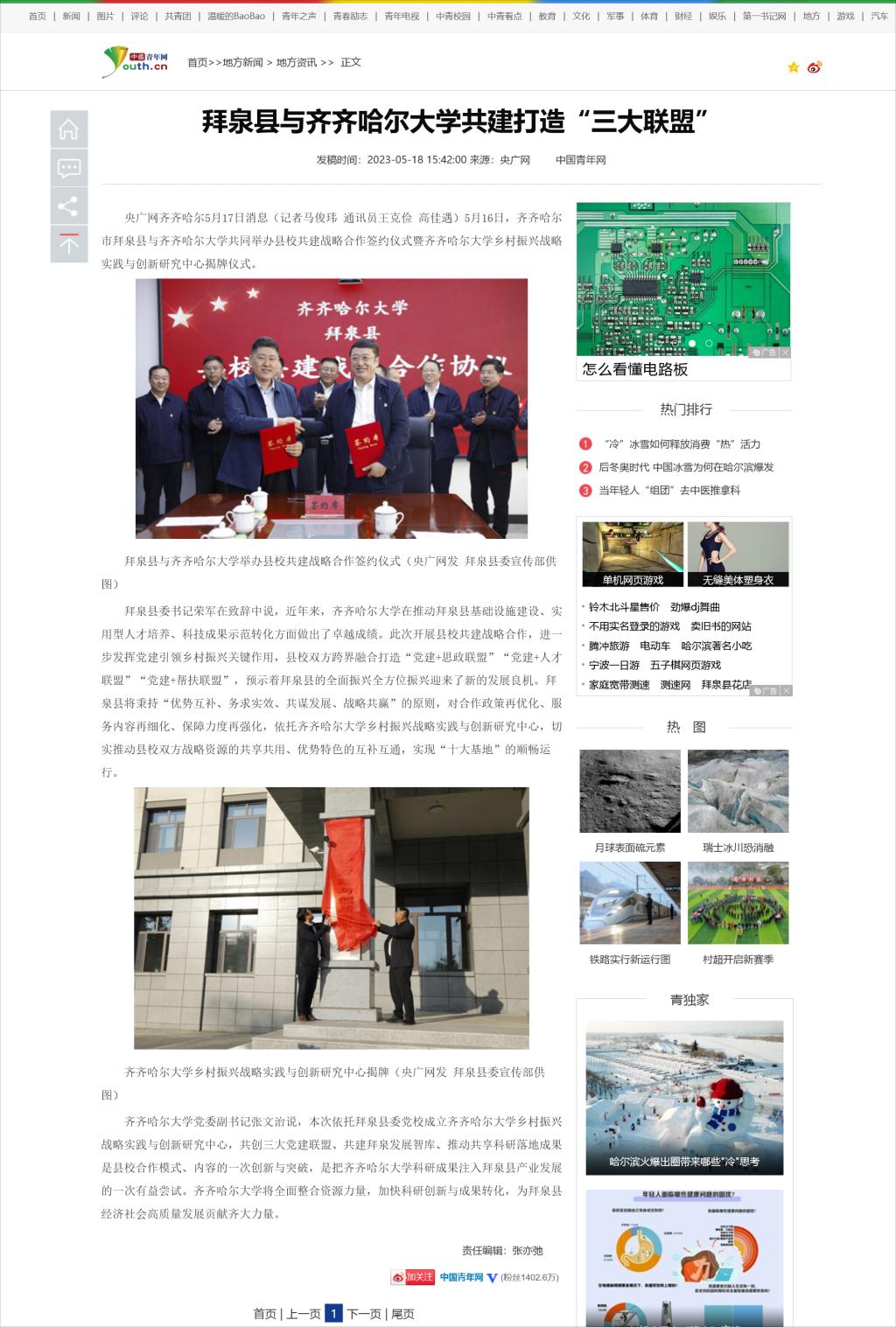 下一条:【中国经济新闻联播】县校共建打造三大联盟 黑龙江拜泉县举行战略合作签约仪式