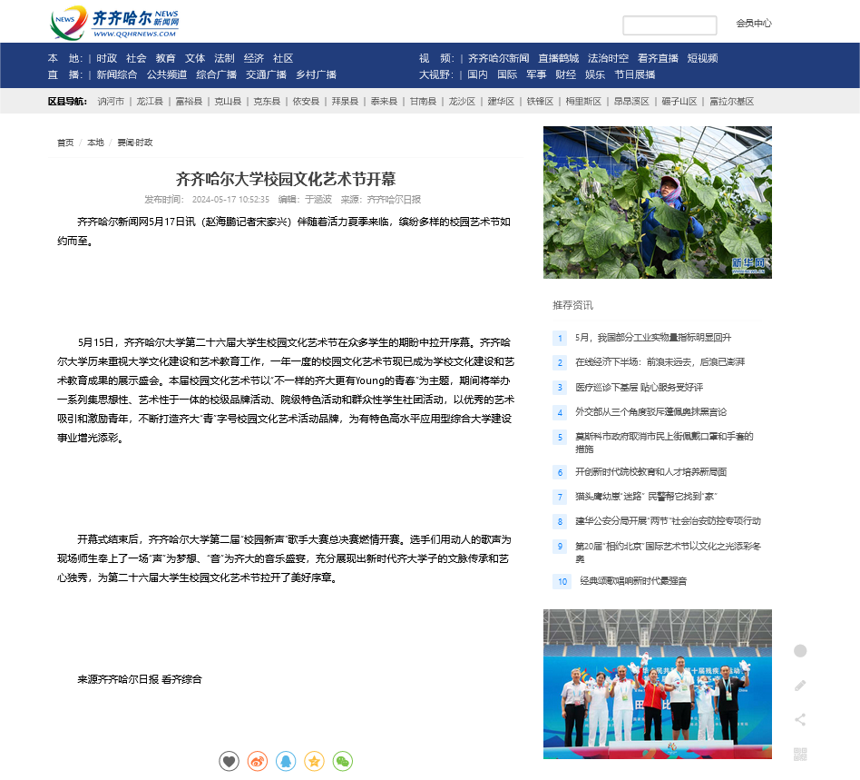 【齐齐哈尔日报】万象城AWC官方网站校园文化艺术节开幕