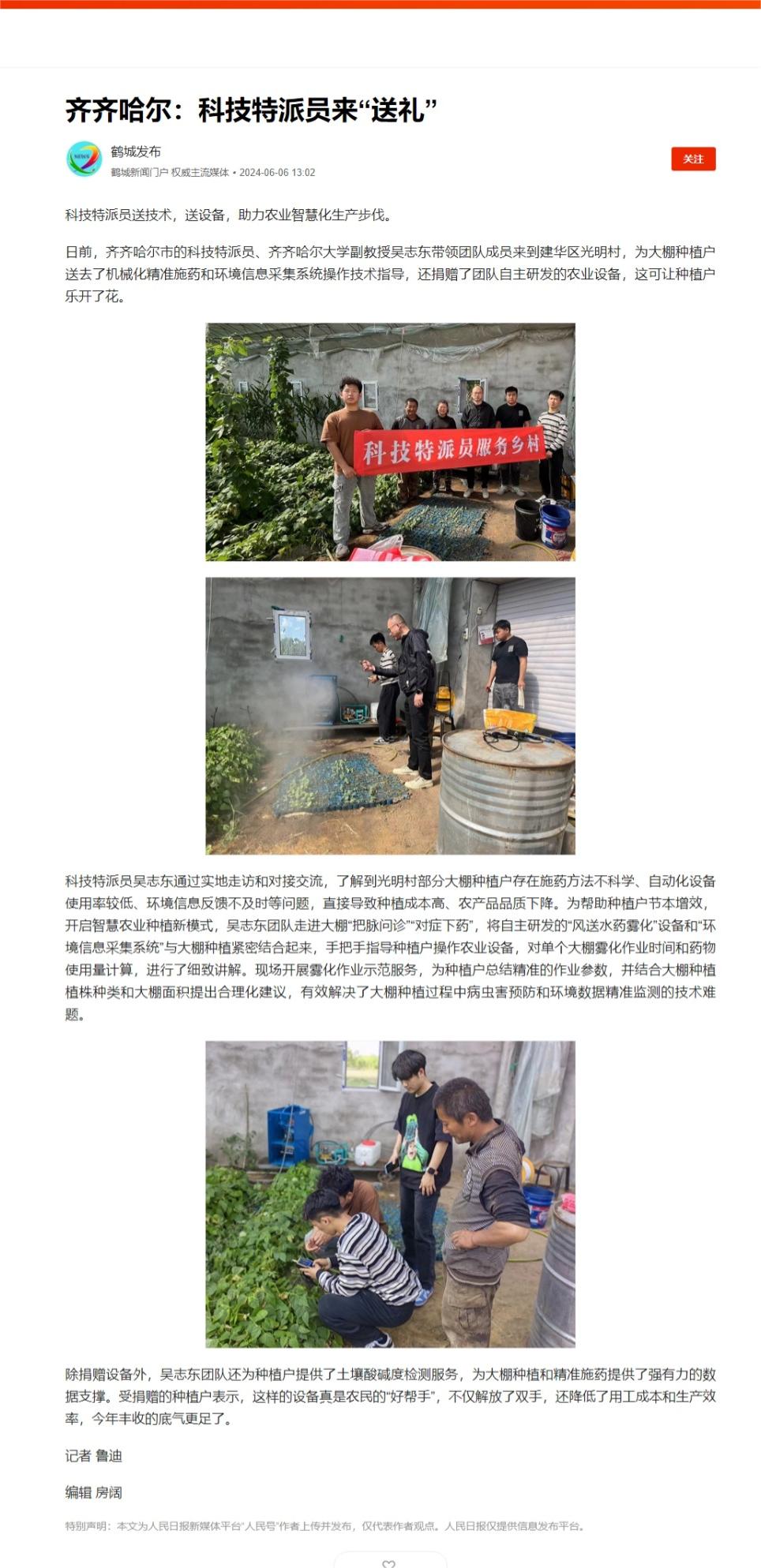 【鹤城发布】齐齐哈尔:科技特派员来“送礼”